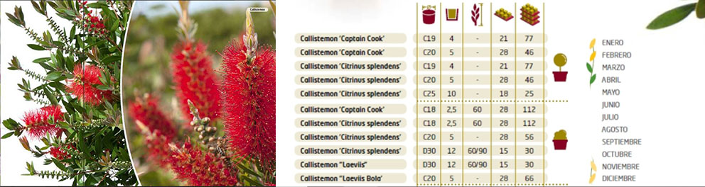 El Callistemon es una de las especies más valoradas de nuestra producción por su resistencia y alto valor ornamental. Este arbusto perenne destaca por su follaje verde intenso y por su llamativa floración en forma de espigas cilíndricas, que recuerdan a un “limpiatubos”, aportando color y carácter a jardines y espacios urbanos.
